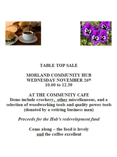 Join us for a Table Top Sale on Wednesday 26th November. 10am to 12.30pm